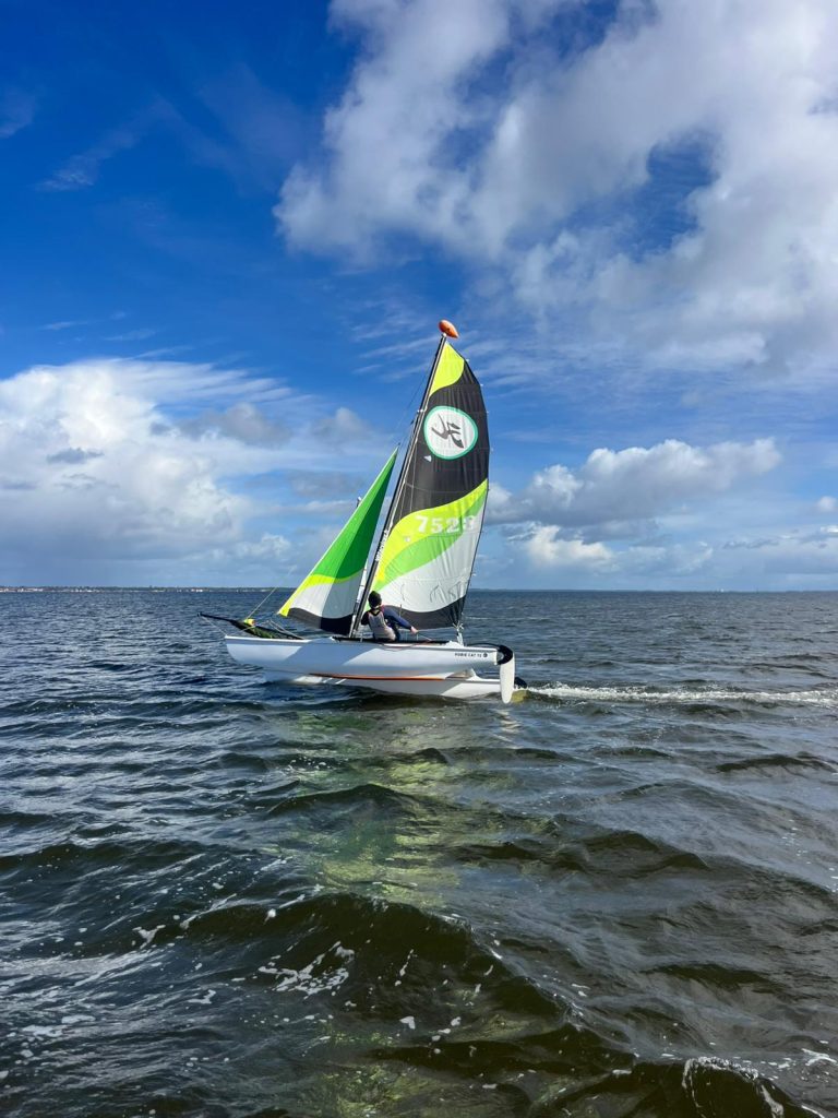 Découverte du catamaran : fun, stable et rapide. Navigation en équipage, premières sensations de vitesse.